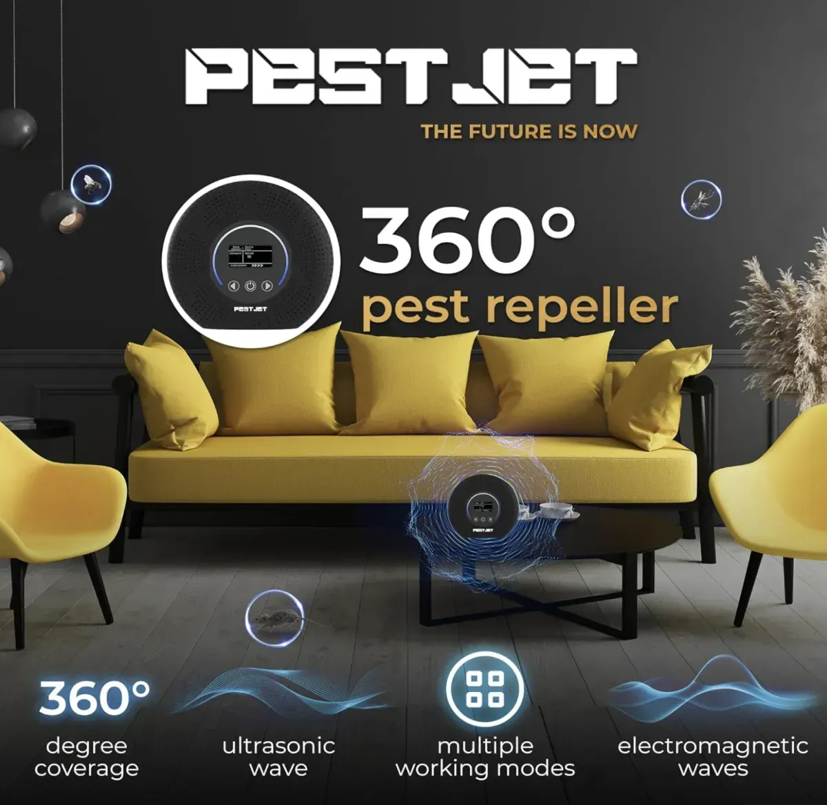 PestJet uses advanced ultrasonic technology to repel pests without chemicals, traps, or sprays. It's safe, silent, and works 24/7 with a simple plug-and-play setup.